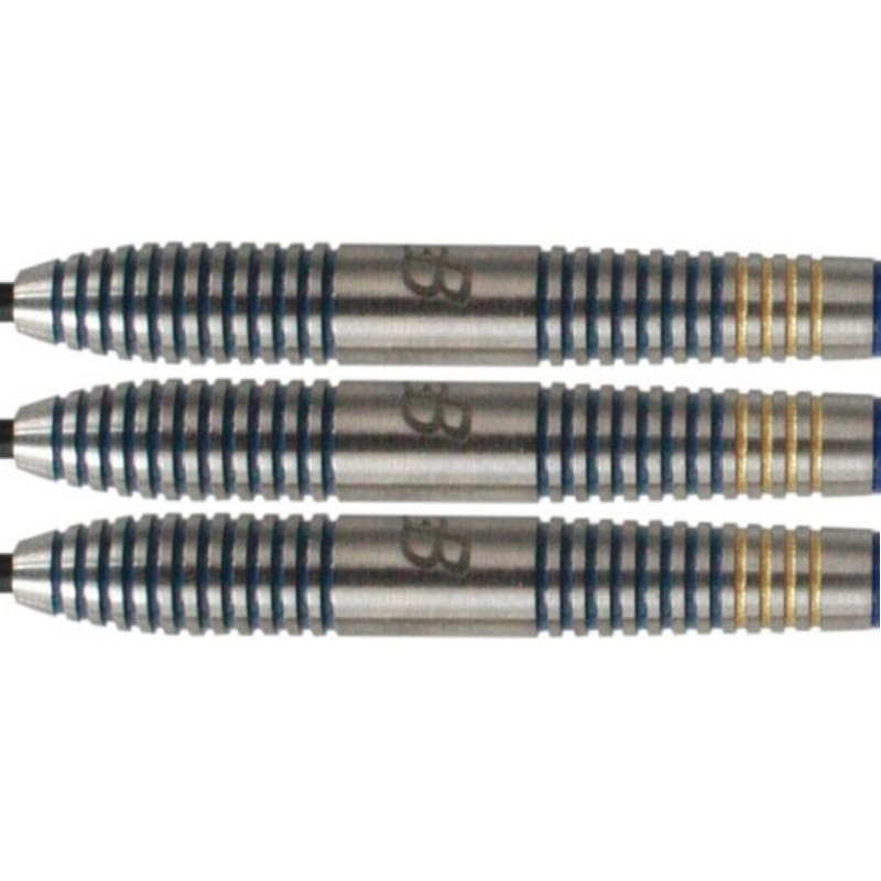 Barney Triple B dartpijlen van Grandslam Darts zijn gemaakt van 90% tungsten. Bovendien werd Raymond van Barneveld hiermee voor de tweede keer wereld kampioen in 1998. De barrel is recht van vorm. En heeft ook een normale ring grip. De barrel is tussen de 46 en 50 mm. Met andere woorden. Een korte tot normale lengte barrel. Voor iedere type darter. De voorkant loopt bovendien taps af naar de punt. Hoe dan ook. Deze darts zijn standaard leverbaar in 21, 23, 25 en ook nog in 27 gram. En wordt geleverd met 3 blauwe nylon medium shafts en ook nog met 3 Raymond van Barneveld flights. Met het opberg hoesje bescherm je punten en bovendien je zelf als je ze opbergt.